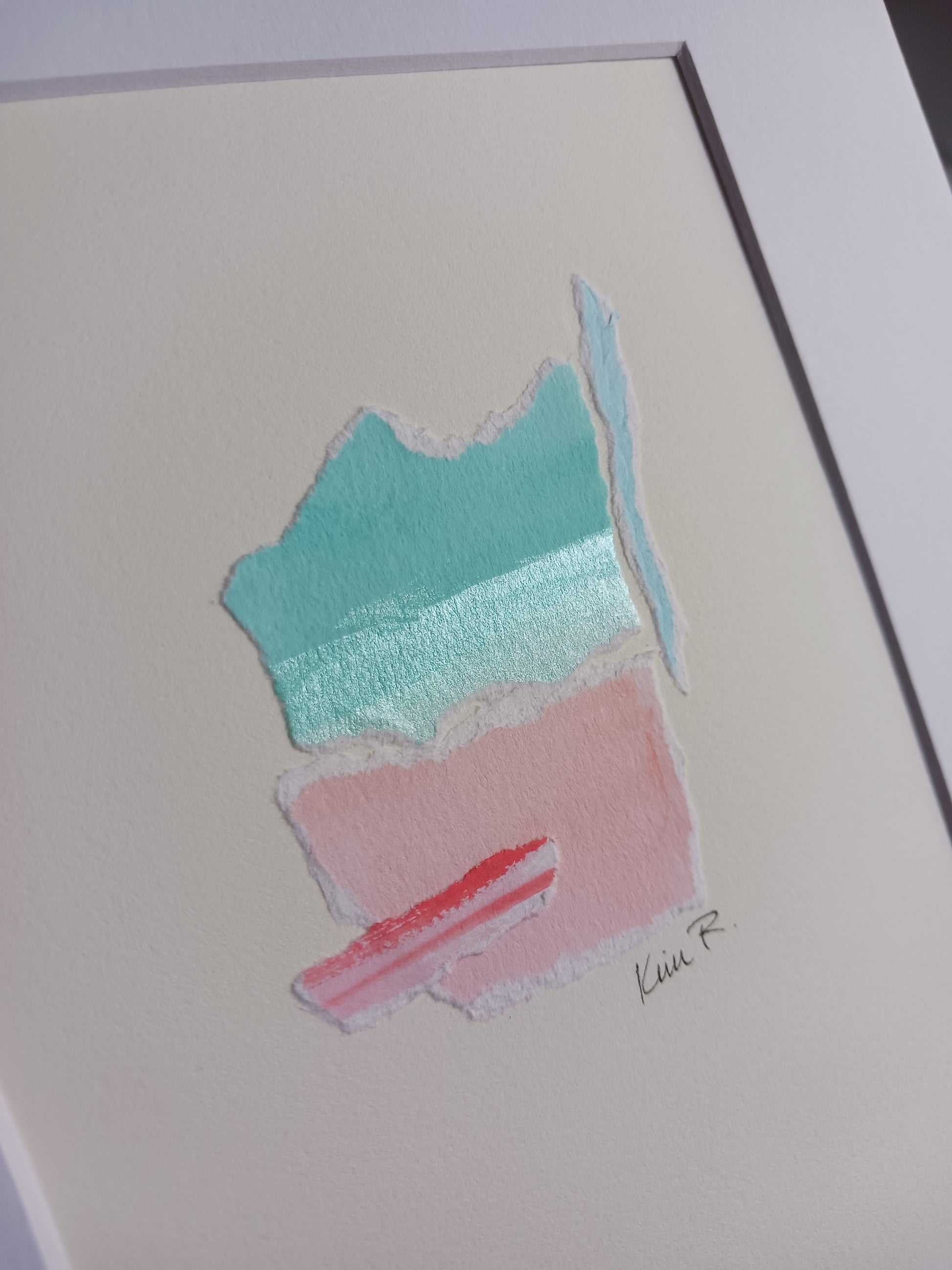 - Crafted with vibrant painted papers, this original collage artwork brings a soothing touch to your space.