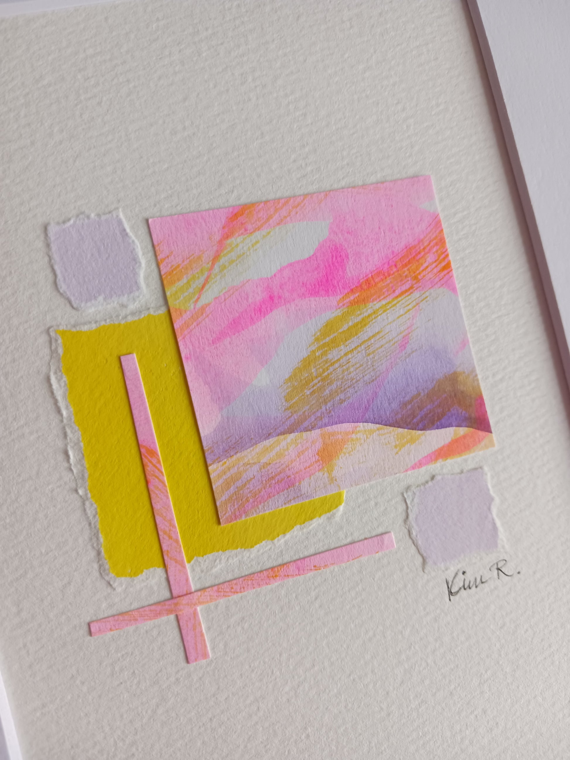 - Crafted with vibrant painted papers, this original collage artwork brings a soothing touch to your space.