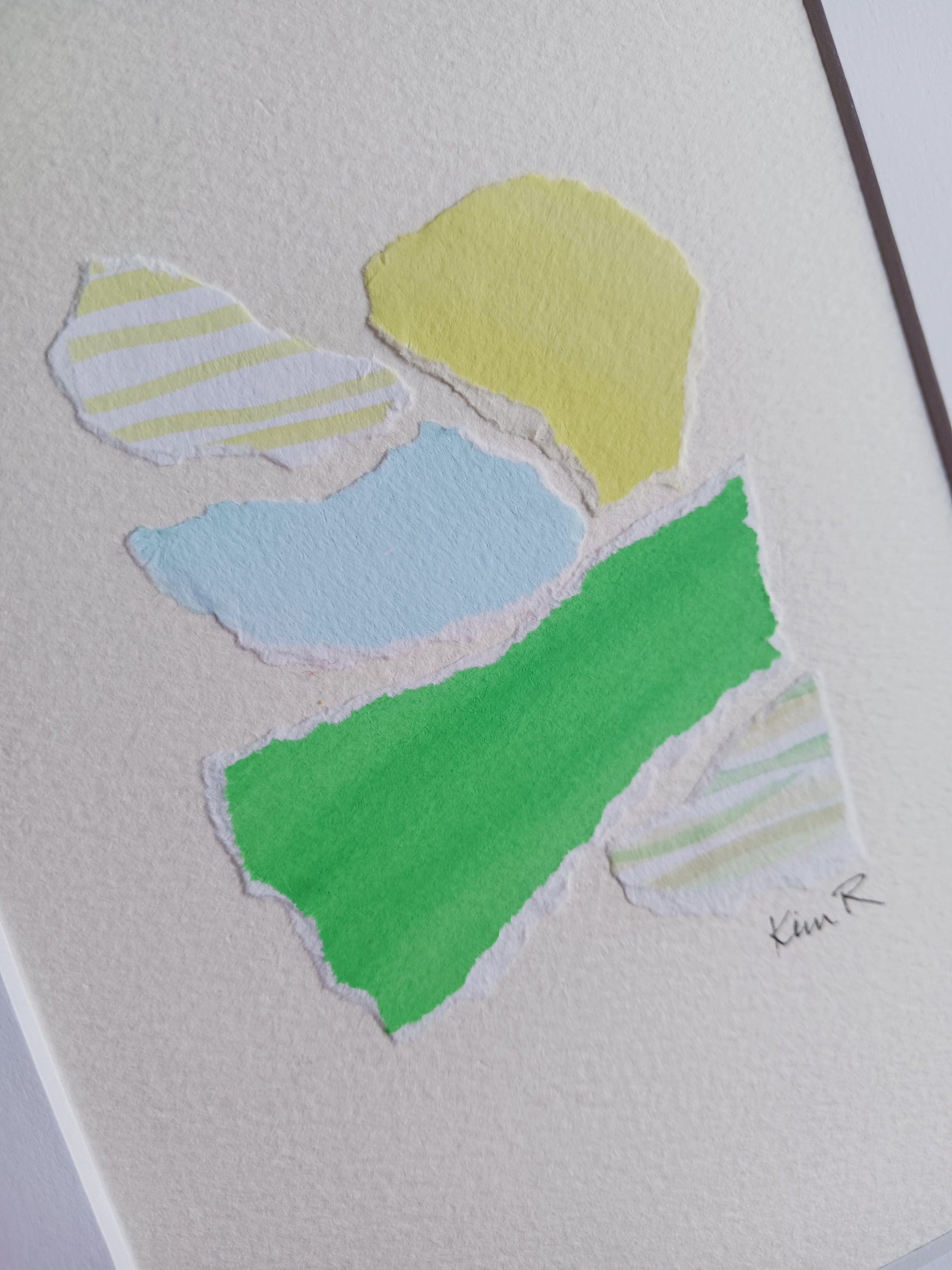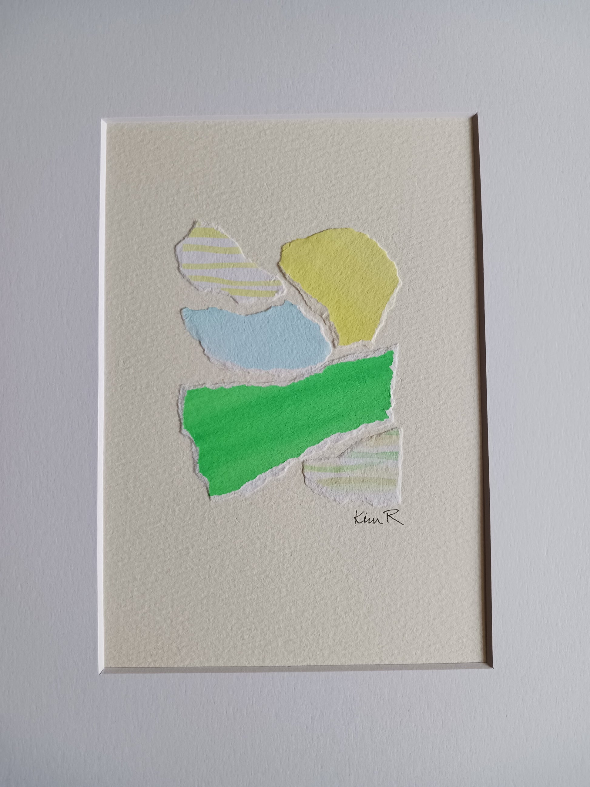 - Crafted with vibrant painted papers, this original collage artwork brings a soothing touch to your space.