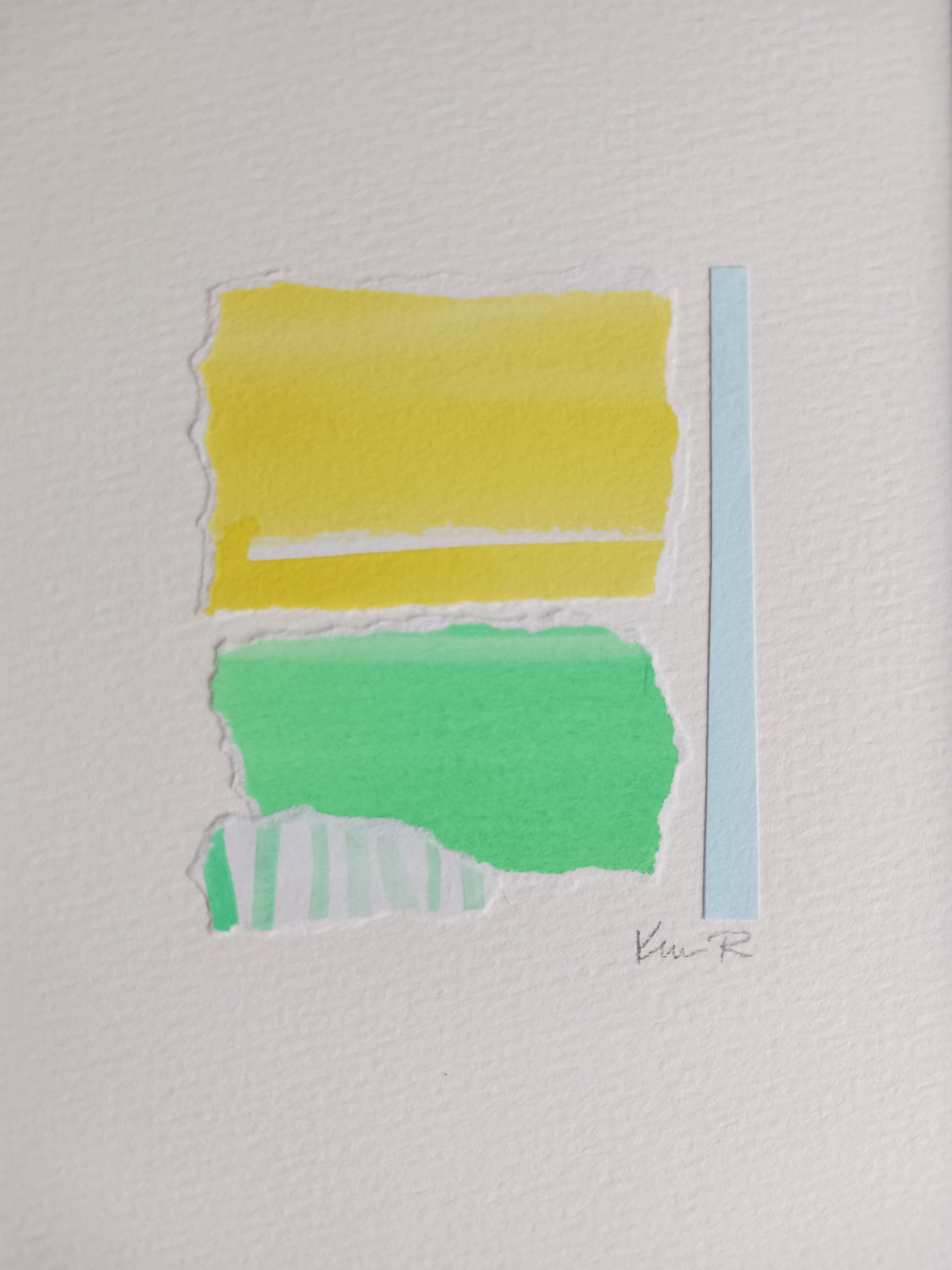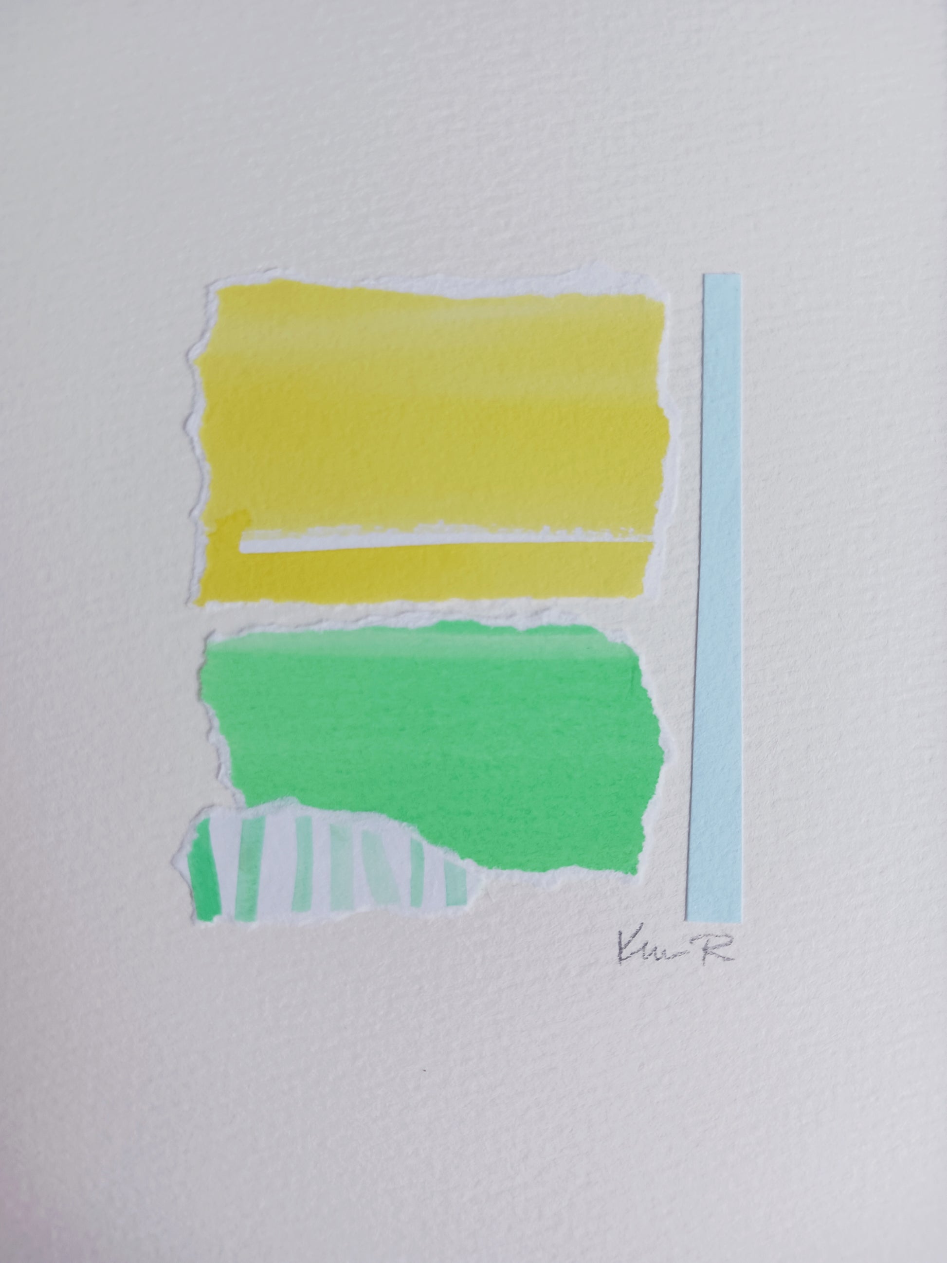 - Crafted with vibrant painted papers, this original collage artwork brings a soothing touch to your space.