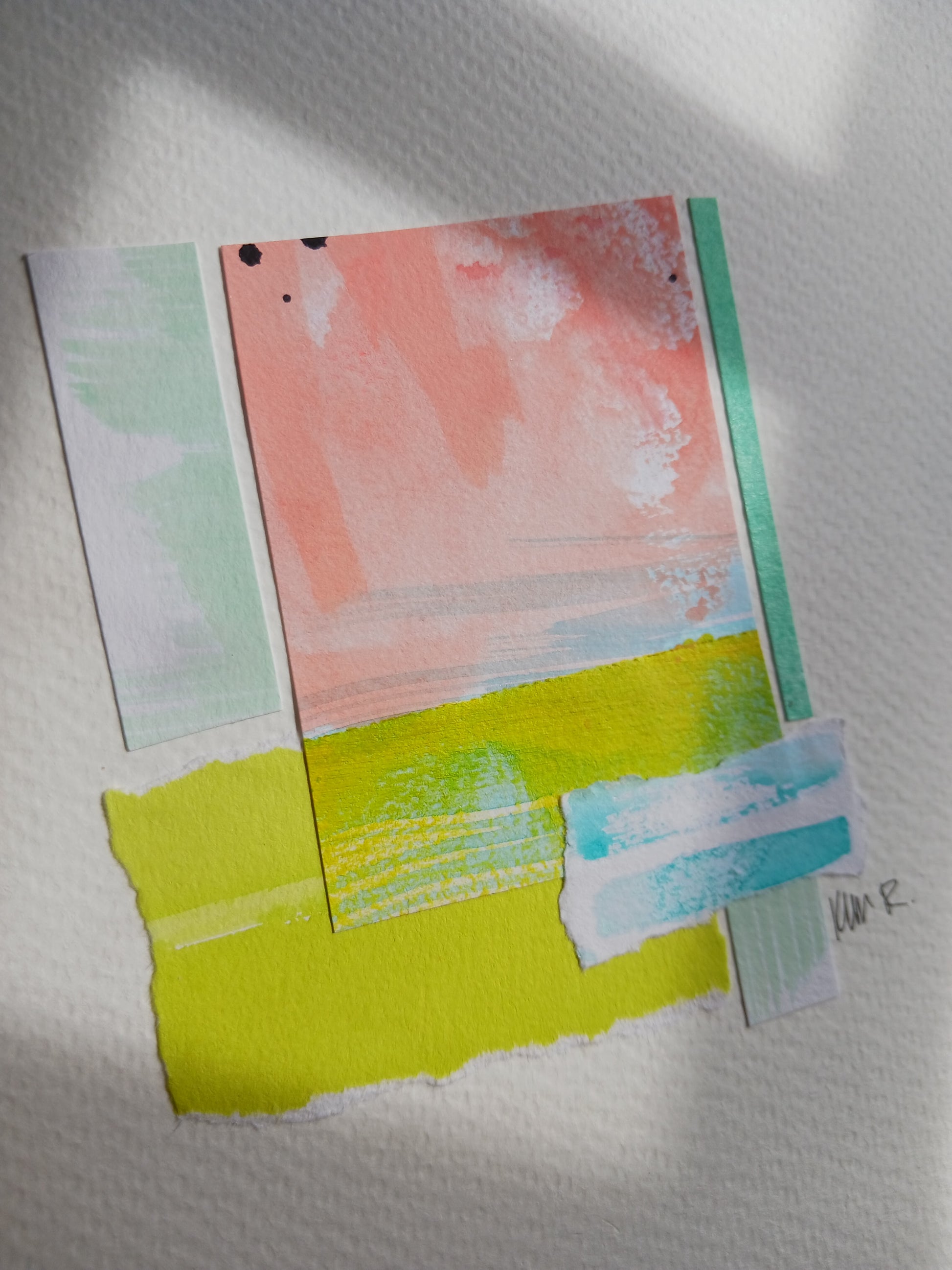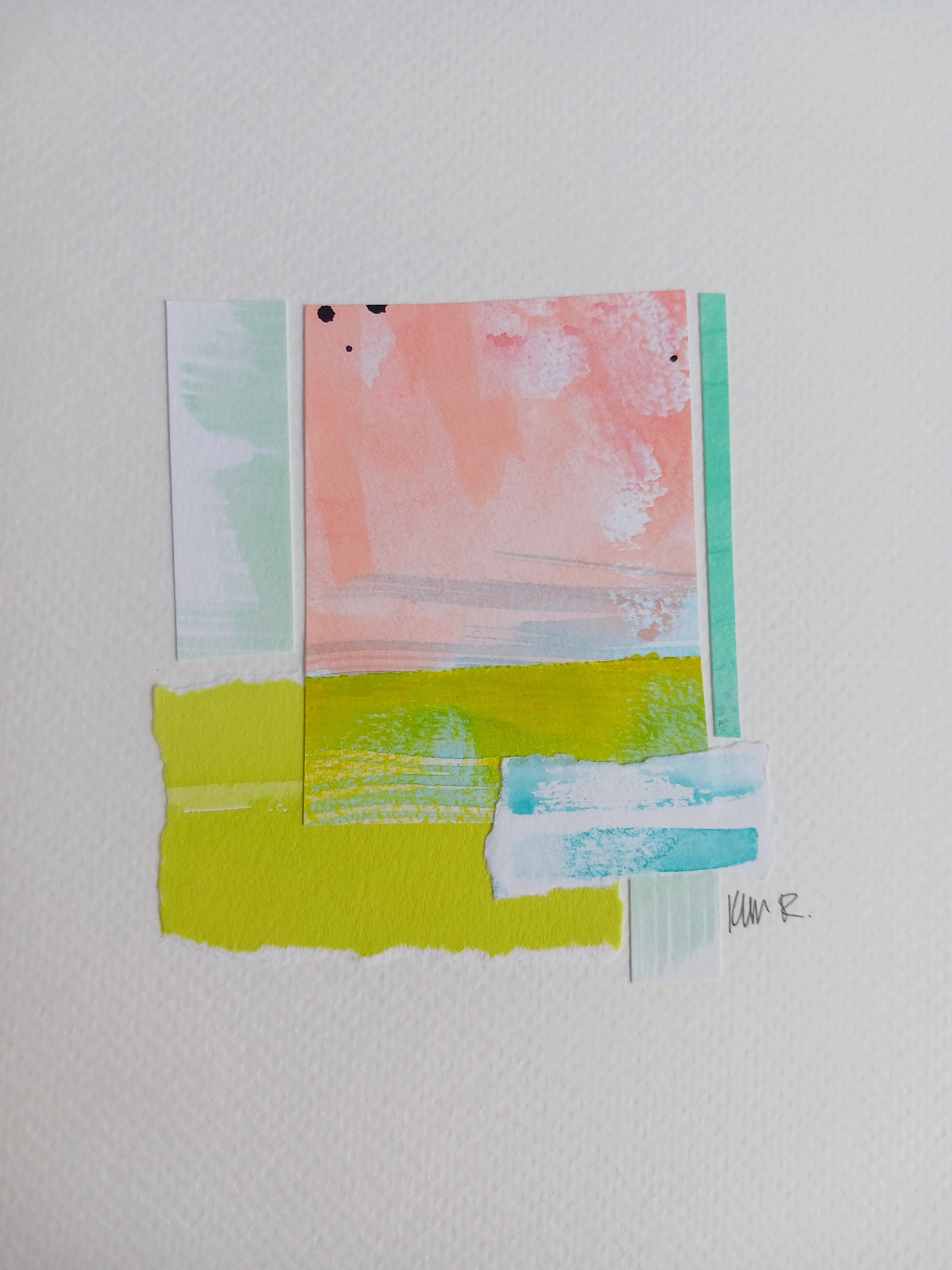 - Crafted with vibrant painted papers, this original collage artwork brings a soothing touch to your space.